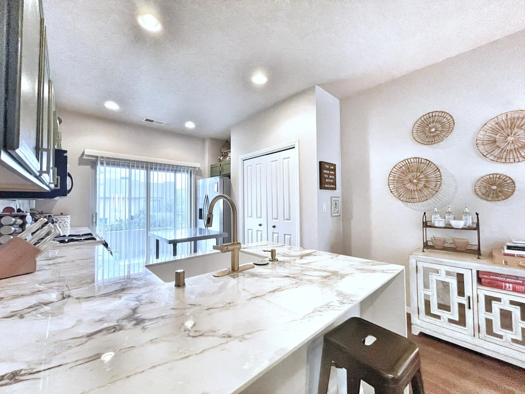 Do not miss your opportunity to view this beautifully updated home! Natural light streams through multiple sliding doors and windows. Thoughtfully remodeled, this home features new flooring throughout, GORGEOUS porcelain countertops with a waterfall edge, refinished cabinets, and updated bathrooms. The floorplan maximizes every square foot and offers extended indoor/outdoor access through the living area. Plus, this home has **PAID** solar which allows you to enjoy a comfortably cool home during the hot summer months without high energy costs! All of this is tucked away inside a well-maintained gated community which offers extra security and peace of mind. Do not wait to schedule your showing today!
